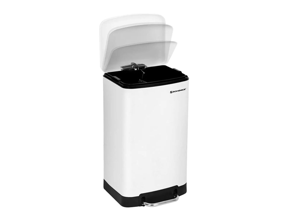 Odpadkový koš o objemu 25l, dva stupně otevření víka 78° a 100°, rozměr 26 x 47 x 34 cm.